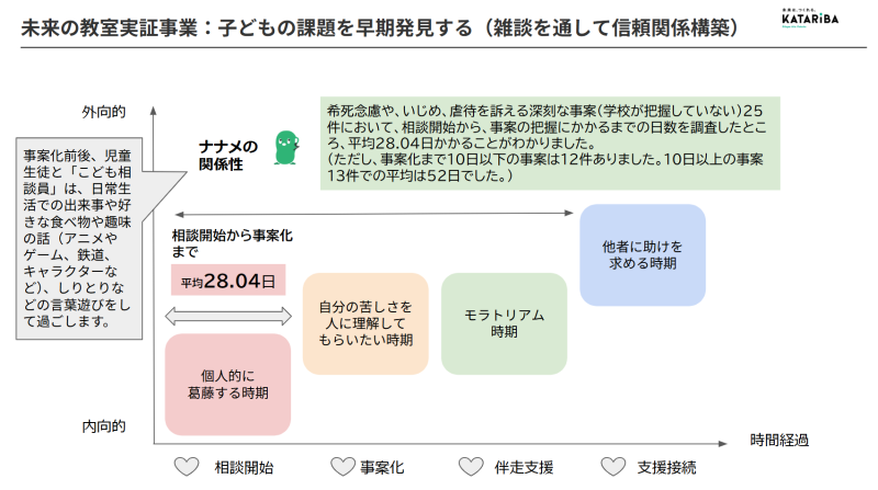 カタリバは子どもたちが直接相談ができるチャット相談窓口「ブリッジ」を運営しており、11月に開催したセミナーでは、自治体と連携してチャット相談窓口を設置したことにより重大事案の早期発見につながった事例などを紹介しました。