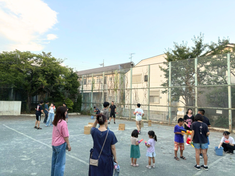 <地域住民と子どもたちが屋外で交流する様子>