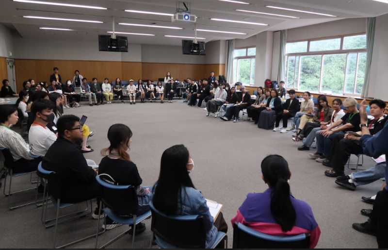 <国際サミットに参加した多国籍なメンバーとディスカッションする生徒たち>