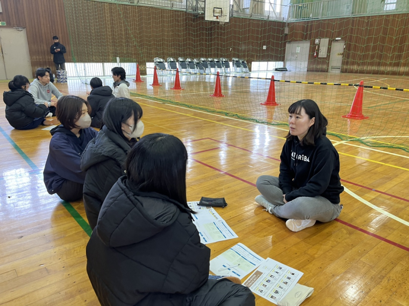 <能登半島地震の被害を受けた地域の高校に出向き、自身の被災体験をもとに高校生と対話する様子>