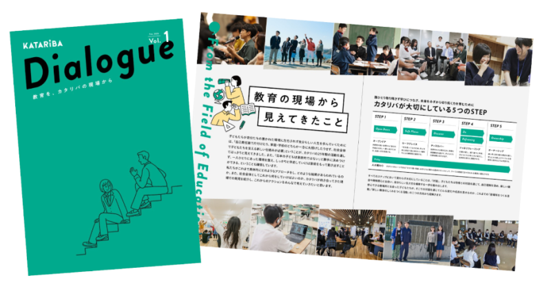 冊子『Dialogue 教育を、カタリバの現場から』では、今の子どもたちを取り巻く課題や学校現場の課題に触れながら、「これからの社会」を考える対話のきっかけになるように、カタリバが様々な立場の方とともに教育活動に取り組む中で見えてきた視点を紹介します。